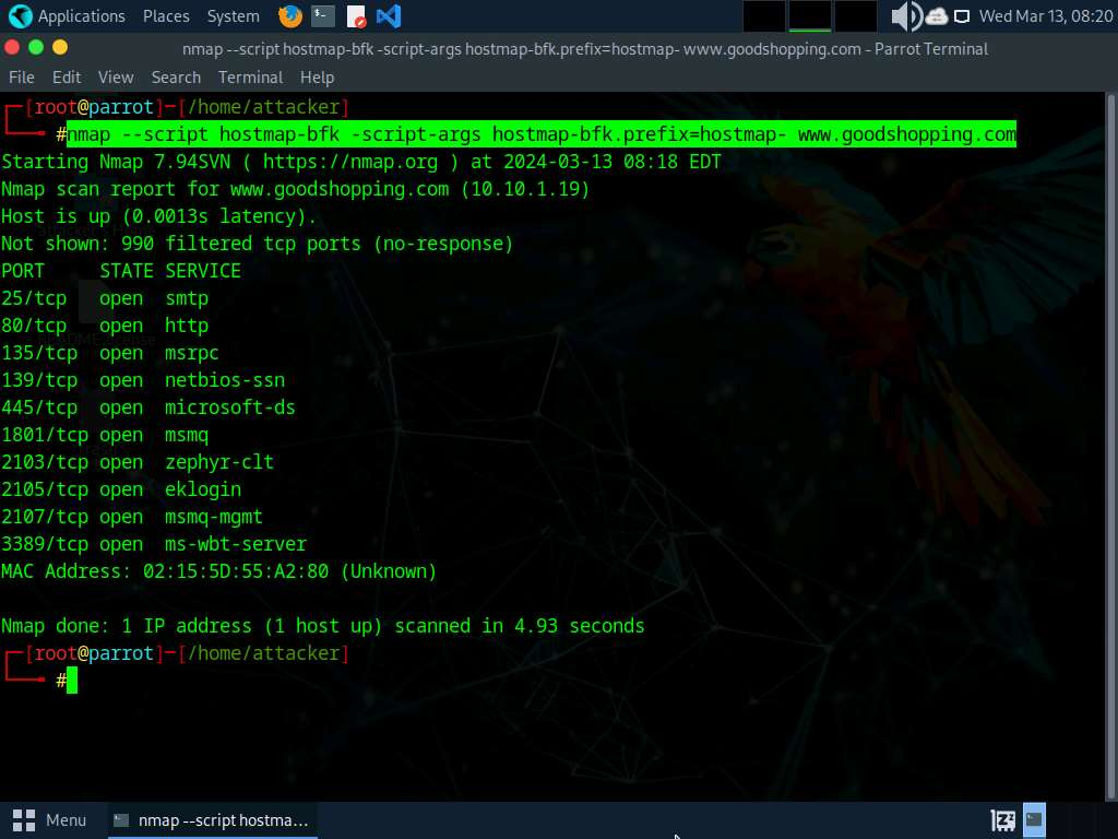 sudo nmap --script hostmap-bfk -script-args hostmap-bfk.prefix=hostmap- www.goodshopping.com