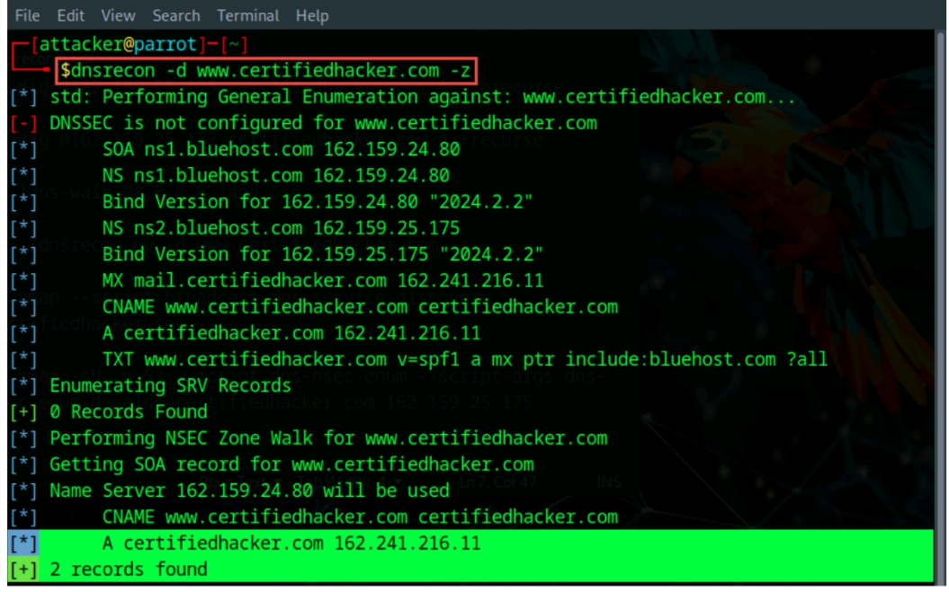 dnsrecon -d <target domain> -z