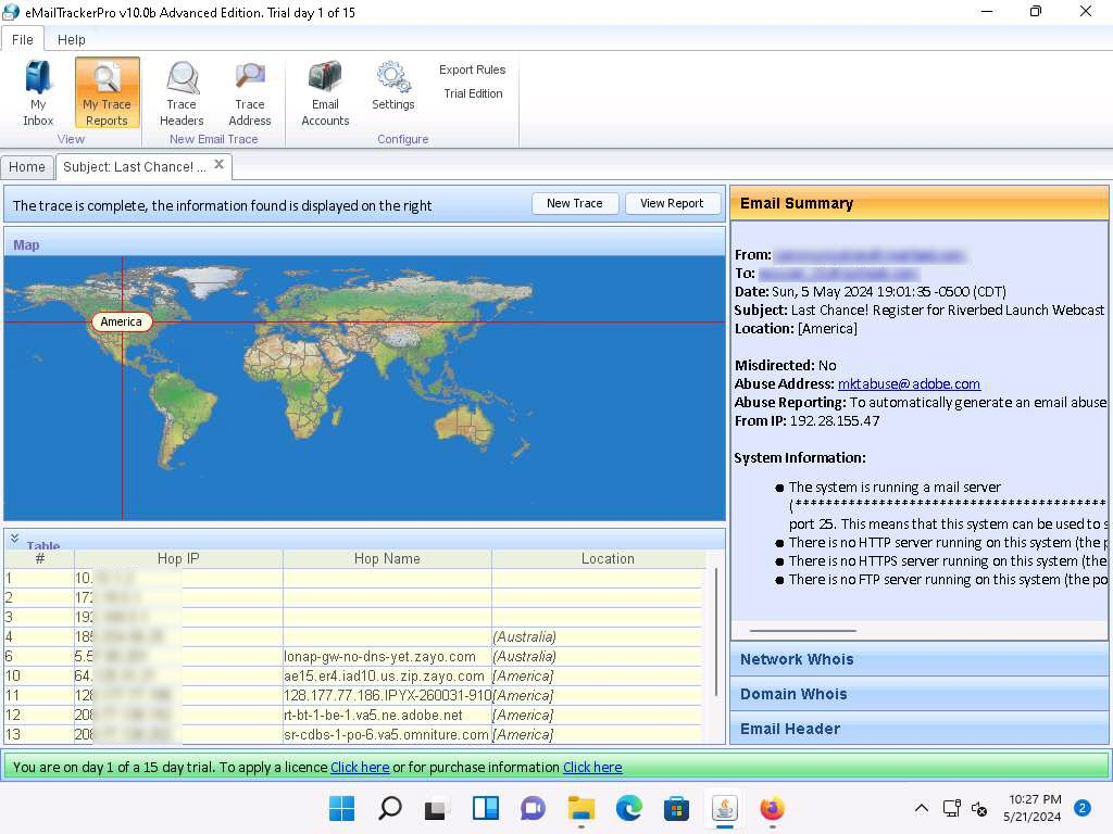 Clicca su My Trace Report e incolla il testo header originale della email per ottenere informazioni: