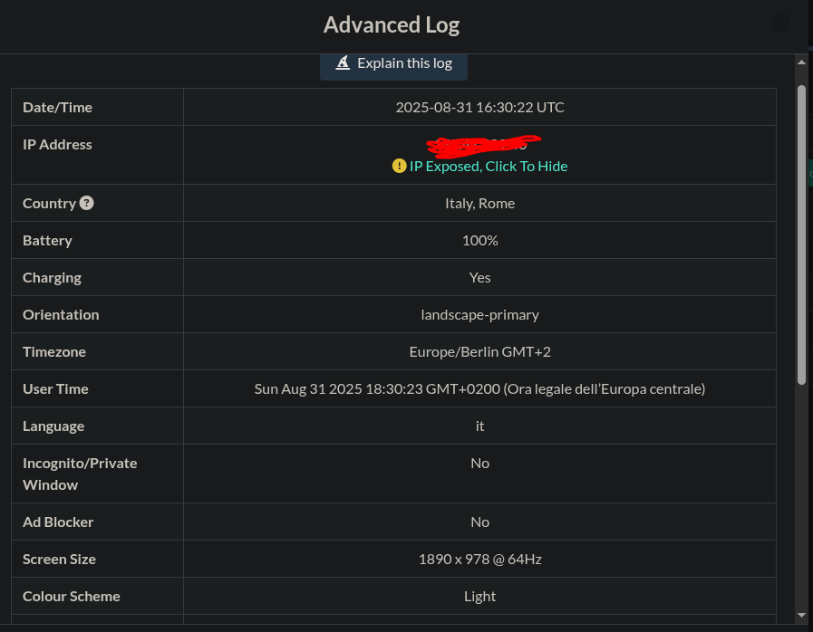 Questo strumento è molto potente perchè ti permette di creare un link da inviare alla vittima che ti fornisce molte informazioni sul dispositivo vittima che ha aperto il link.