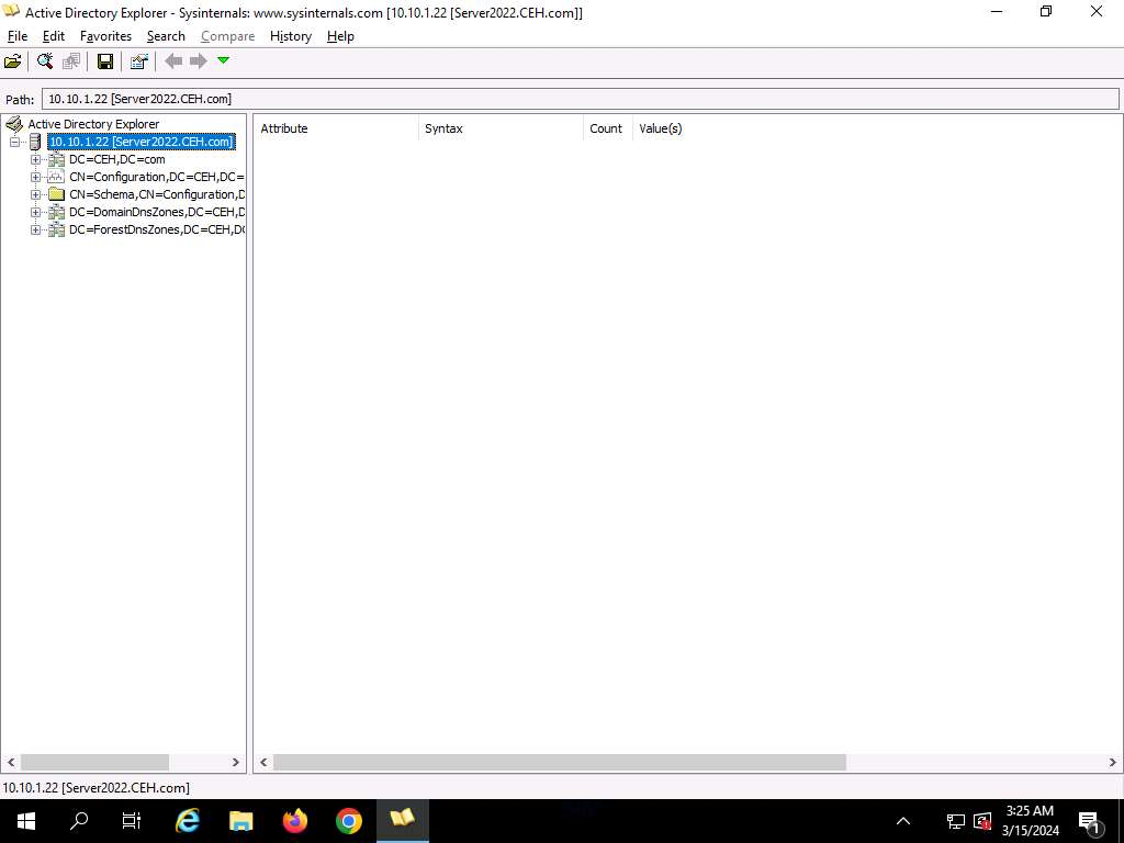 Active Directory Explorer visualizza la struttura di Active Directory nel riquadro di sinistra, come mostrato nello screenshot.