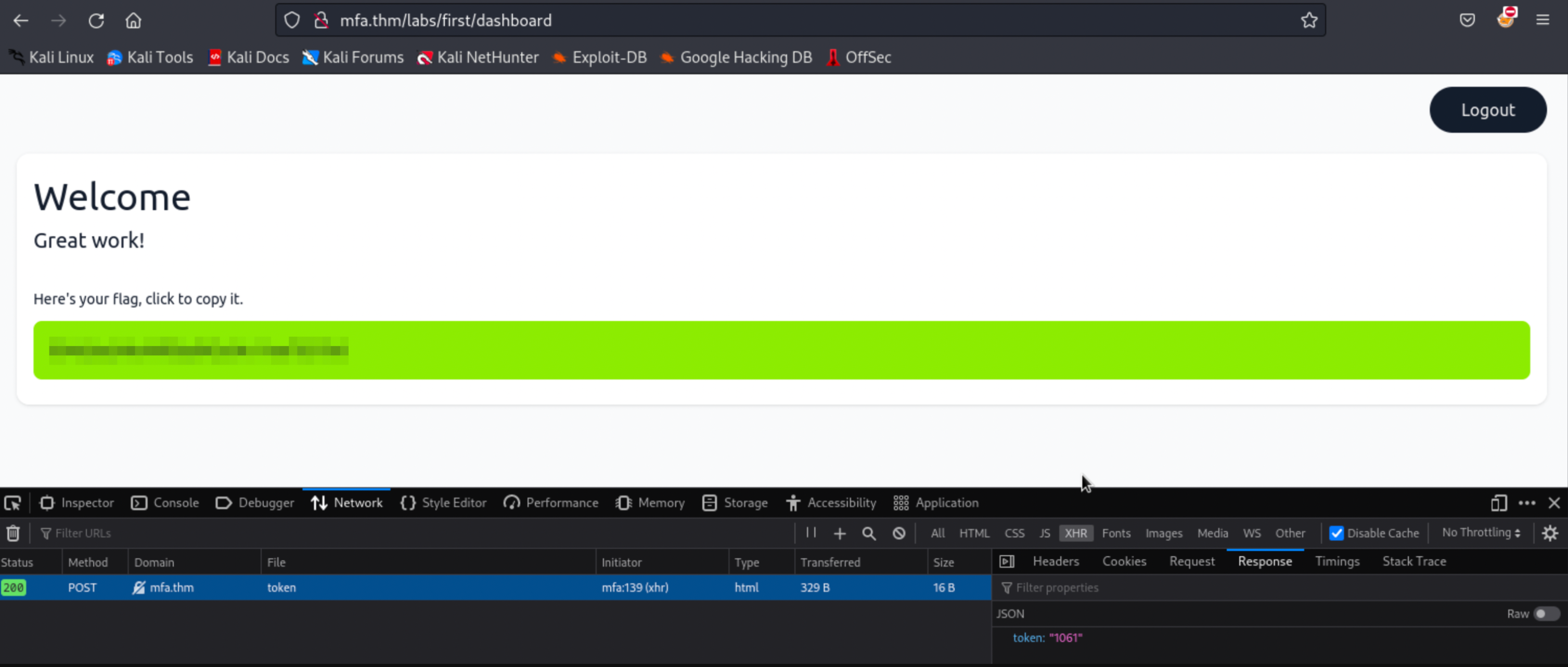 In questa serie di immagini viene mostrato come possiamo catturare il codice di verifica attraverso lo strumento per sviluppatori, ci è bastato mandare le credenziali corrette e il messaggio con il codice ci è stato mandato tramite risposta XHR.