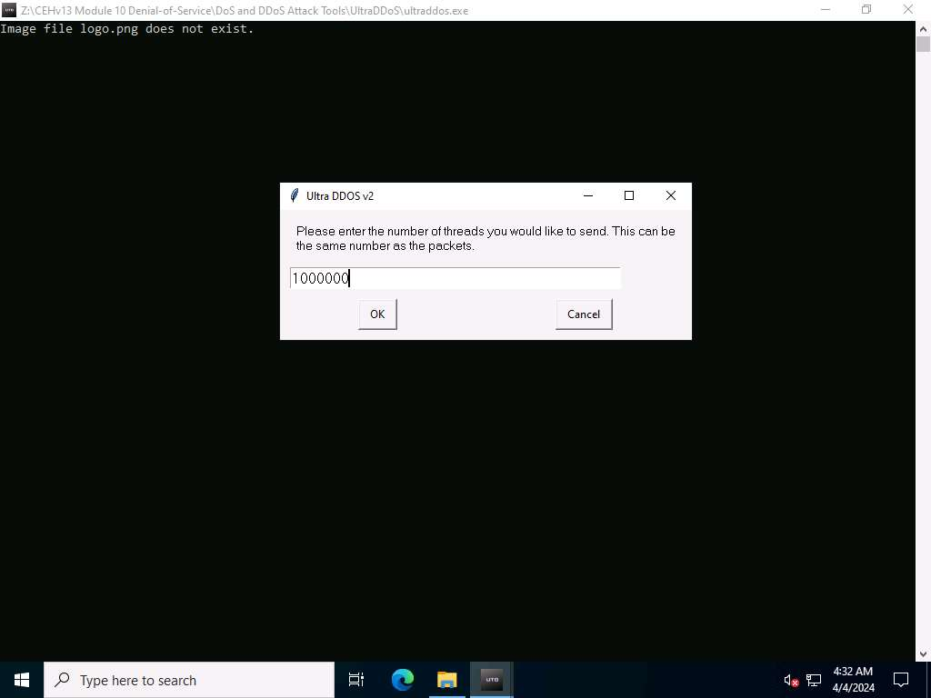 Poi inseriamo il numero di pacchetti che vogliamo mandare, più sono meglio è, ma bisogna fare attenzione alla quantità perchè altrimenti al posto che mandare in crash la macchina vittima mandiamo in crash la nostra:
