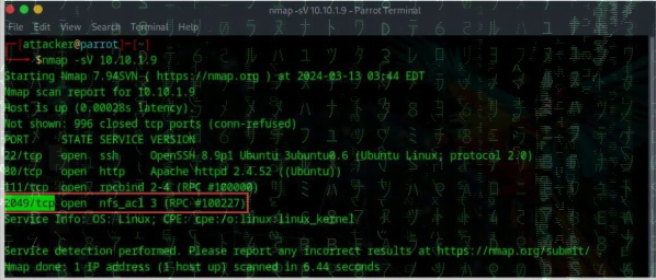 Se durante una scansione ci appare un qualcosa di questo tipo possiamo effettuare un attacco al servizio NFS e provare ad ottenere una reverse shell.
