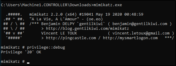 mimikatz.exePoi lanciamo questo comando per verificare di poter utilizzare Mimikatz in questo scenario: