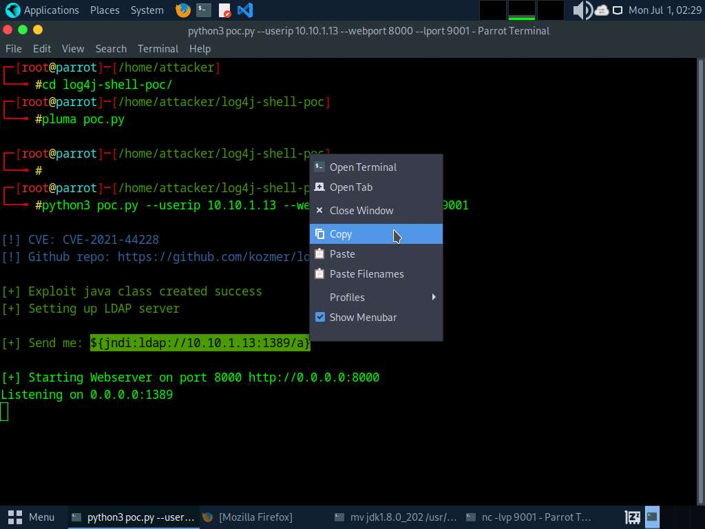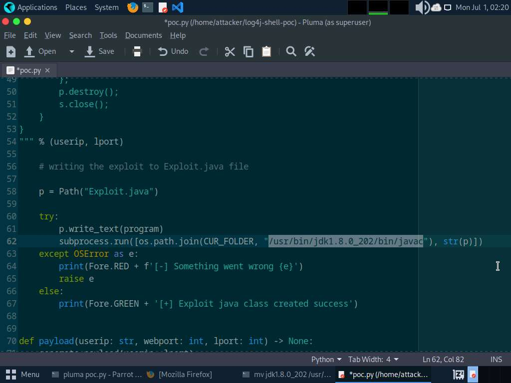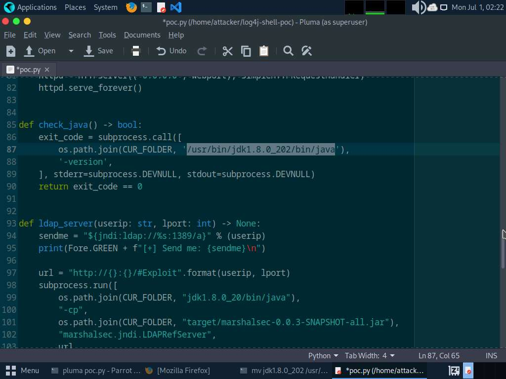 mv jdk1.8.0_202 /usr/bin/Dalla cartella dell’exploit modifica il file poc.py nel seguente modo: