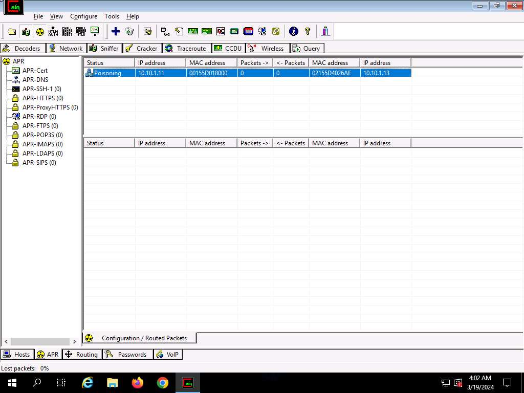 Se infatti provi a inviare pacchetti come potrebbero essere dei pacchetti ping tra le due macchina vittime e provi ad attivare e disattivare il poisoning vedrai i pacchetti transitare quando attiva e non transitare quando disattiva.